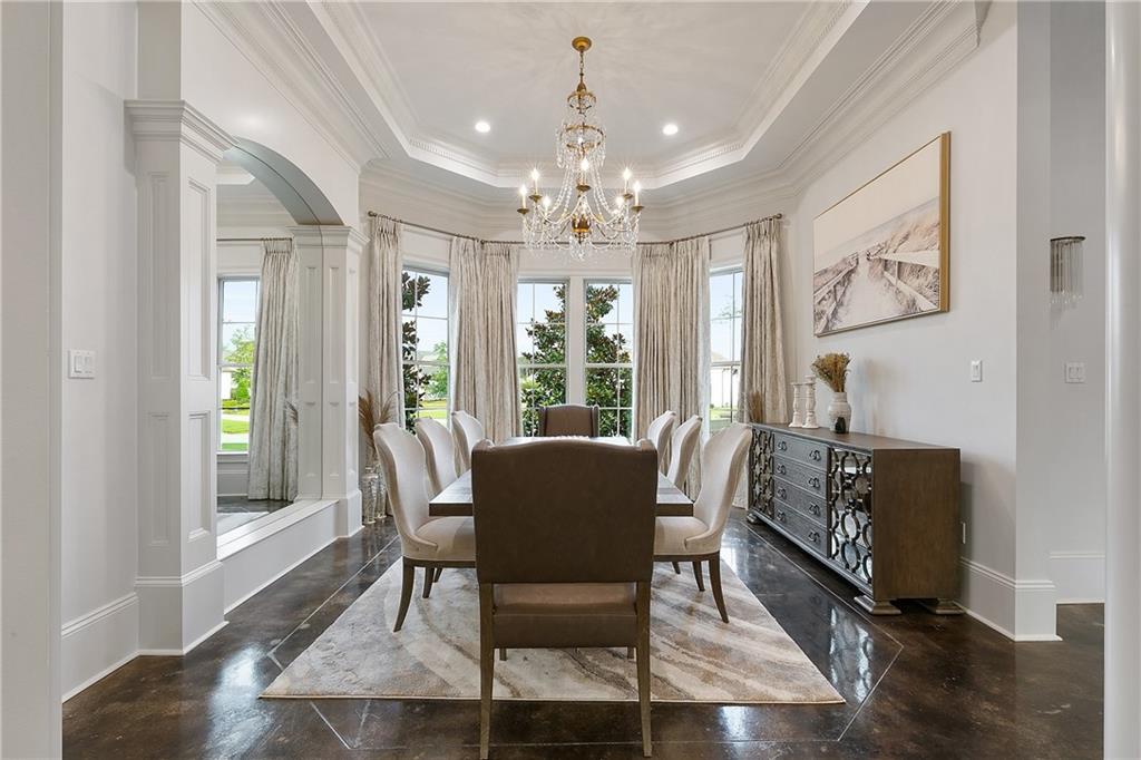 Introducing the epitome of luxury living in the beautiful Sanctuary subdivision! This stunning property at 120 Tranquility Drive is truly a one-of-a-kind gem that offers a tranquil and serene living experience. Located in a gated community, this property sits on a sprawling 1.8-acre lot that is surrounded by lush greenery and beautiful landscaping and boasts 5 bedrooms, 5 full baths and 3 half baths. As you enter the property, you are greeted by a grand foyer with a curved staircase that exudes elegance and sophistication. The kitchen is a chef's dream, featuring a large island, copper hood, and quartzite countertops as well as a large pantry and wet bar. Large den with a fireplace and shiplap ceilings provides a cozy space to relax. The owner's suite is a true oasis, located on the main level and featuring a fireplace, underlit tray ceiling, and dual closets with washer dryer hookups. An additional laundry room is located on the main level for added convenience. Upstairs, you'll find a full theater, game room with a large serving bar and balcony overlooking the pool. Guest suite with a full bath and kitchenette offers privacy and comfort for guests. The upstairs also features an office, additional laundry room and loft area, providing plenty of space for all your needs. Walk-in attic access offers ample storage space. Large outdoor patio is great for entertaining guests, equipped with speakers and an outdoor kitchen and the pool and cabana with storage and a half bath provide the perfect oasis for relaxation or entertaining guests. With garage parking for four cars and large circular drive, there is plenty of room for everyone. This property truly has it all and is waiting for you to call it home. Don't miss out on the opportunity to own this luxurious piece of paradise in The Sanctuary!
